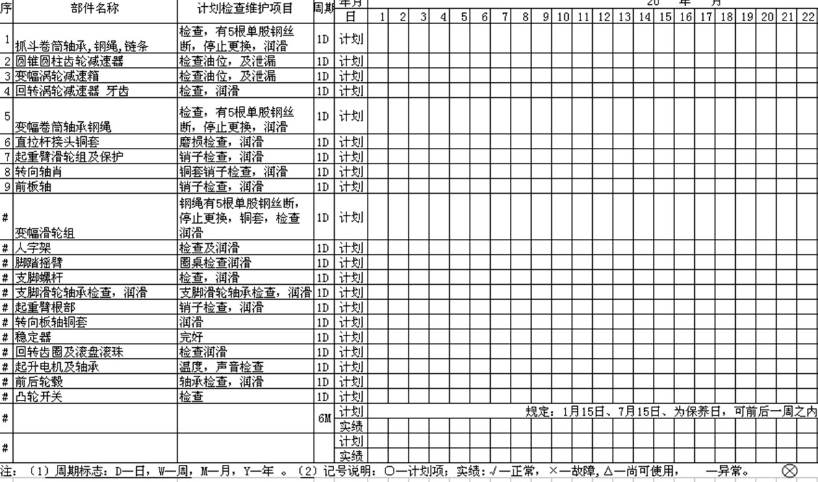 碼頭吊機(jī)安全維護(hù)檢查表格部分截圖